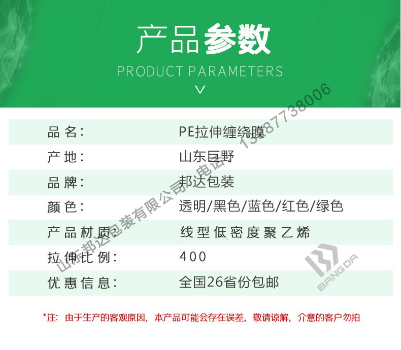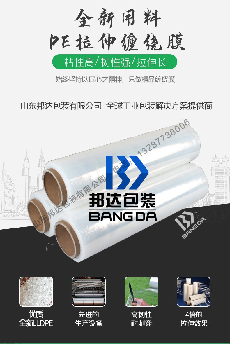 山東邦達包裝有限公司專業(yè)生產拉伸纏繞膜pe纏繞膜濟南纏繞膜化工纏繞膜機用纏繞膜托盤專用纏繞膜出口包裝纏繞膜等各種產品,我公司生產的纏繞膜厚度薄,性價比高,抗緩沖強度、抗刺穿