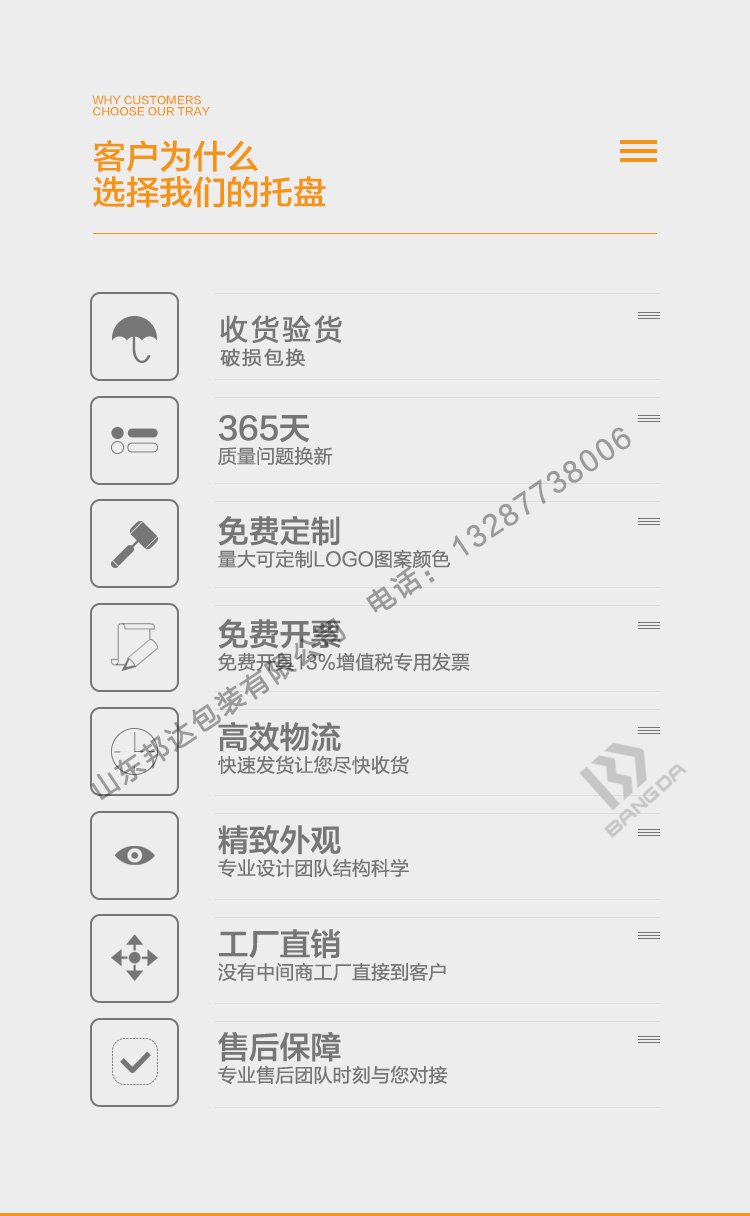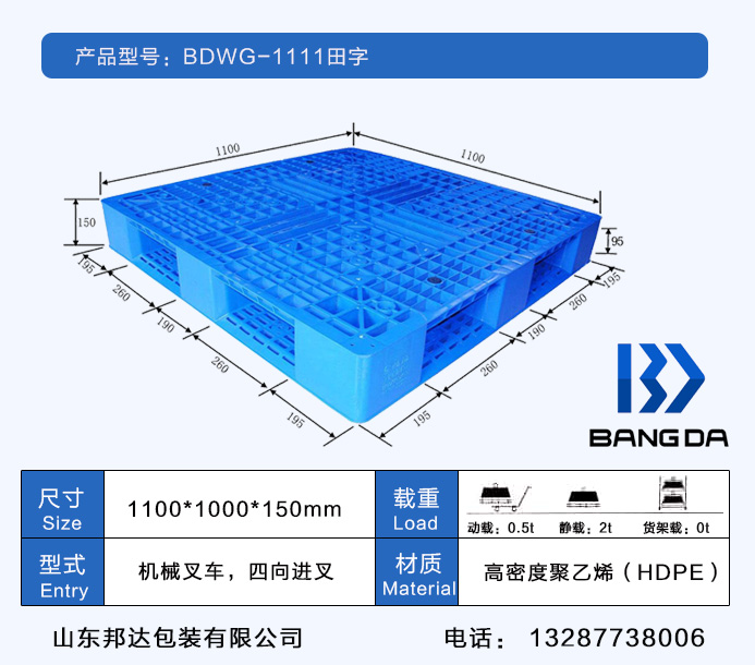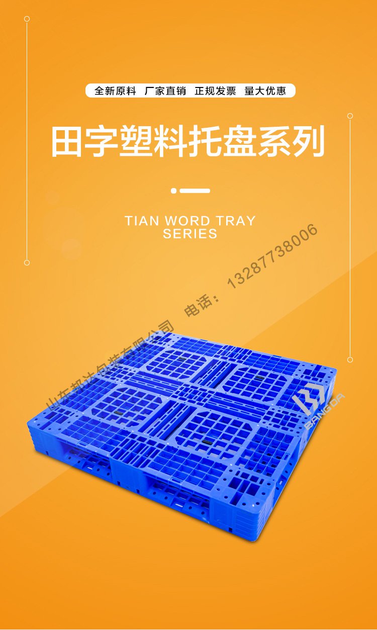 山東邦達(dá)田字網(wǎng)格塑料托盤(pán)采用無(wú)毒、無(wú)味、無(wú)臭的HDPE(低壓高密度聚乙烯)原材料,通過(guò)注塑工藝而制成;具有良好的耐熱性和耐寒性,化學(xué)穩(wěn)定性好,具有較高的剛性和韌性,機(jī)械強(qiáng)度好,介電性能,耐環(huán)境應(yīng)力開(kāi)裂性能亦較好。