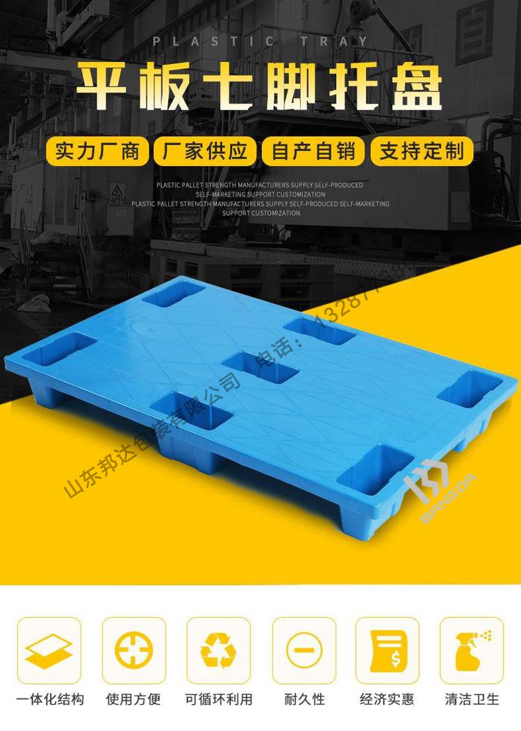 現(xiàn)市場七腳塑料托盤基本都為平面的托盤,顏色可定做。
