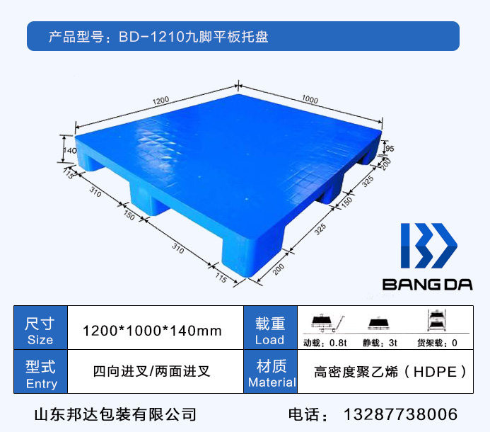 山東邦達(dá)包裝有限公司九腳平板塑料托盤規(guī)劃主要有: